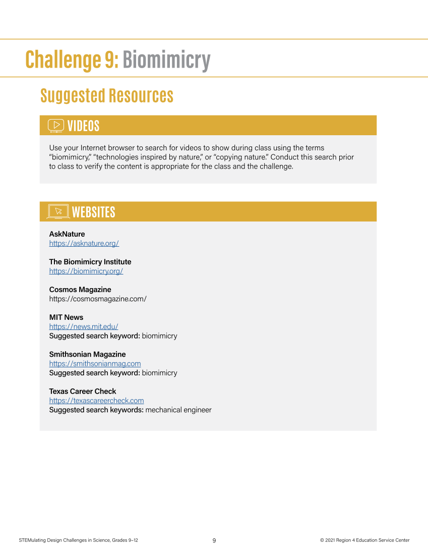 “biomimicry, ” “technologies inspired by nature,” or “copying nature.” Conduct this search prior